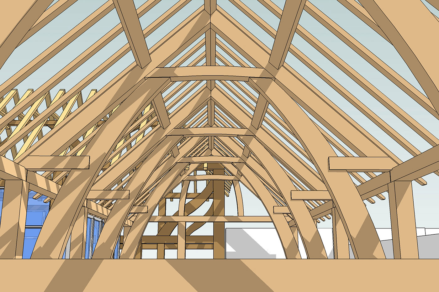 Green Oak framed extension and restoration to an existing, circa 15th century barn. Initially our involvement and appointment, RIBA Stage A-D to evolve the scheme design with the client to obtain planning approval. The scheme developed to the preparation of more detailed proposals, RIBA Stage E-F, along with specialist to prepare full working drawings and schedules to discharge planning conditions on the existing structure.