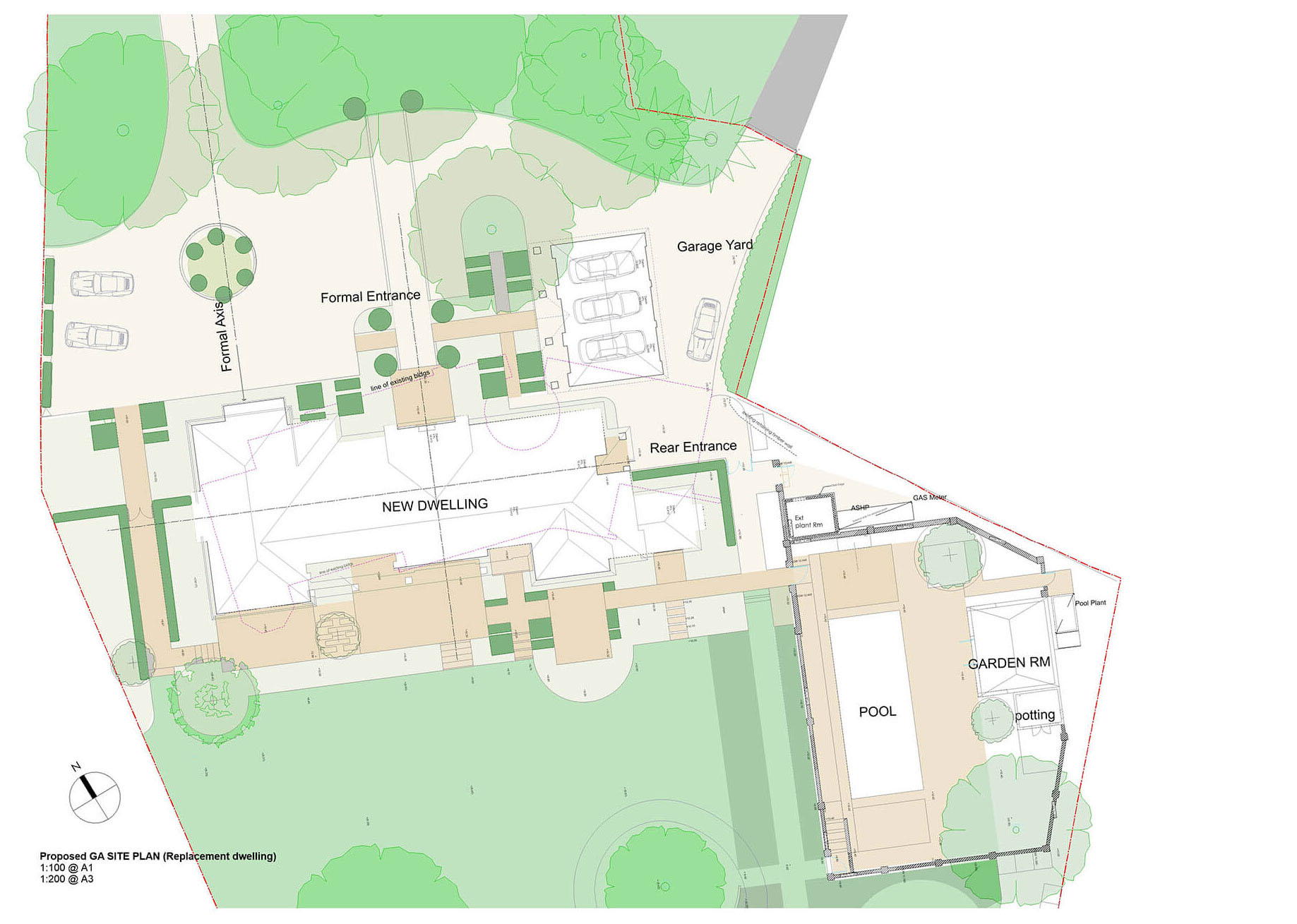 This project began as a major refurbishment of an existing 1950 heavily extended dwelling on a site that demanded a better resolution. It quickly progressed to a demolition and New build. Our initial response was well received by the client to create an imposing , but well-crafted traditional Arts & Crafts styled dwelling that maintained a sense of ‘Home’ running throughout the internal spaces internally. Our Appointment for a Full service - RIBA Stage 1-6 , began on site in late 2020 and progressed to a completion May 2022.